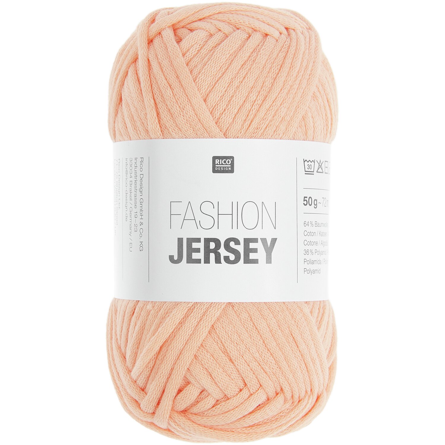 Fashion Jersey von Rico Design ist das optimale Garn für leichte Sommermode. Bei dem runden Faden handelt es sich um ein gestricktes Bändchen, das im Handumdrehen luftig-leichte Strickstücke entstehen lässt. Seine ideale Kombination aus Baumwolle und Polyamid garantiert ein angenehmes Tragegefühl. Fashion Jersey lässt sich wunderbar leicht verstricken und ergibt ein klares, gleichmäßiges Maschenbild.
