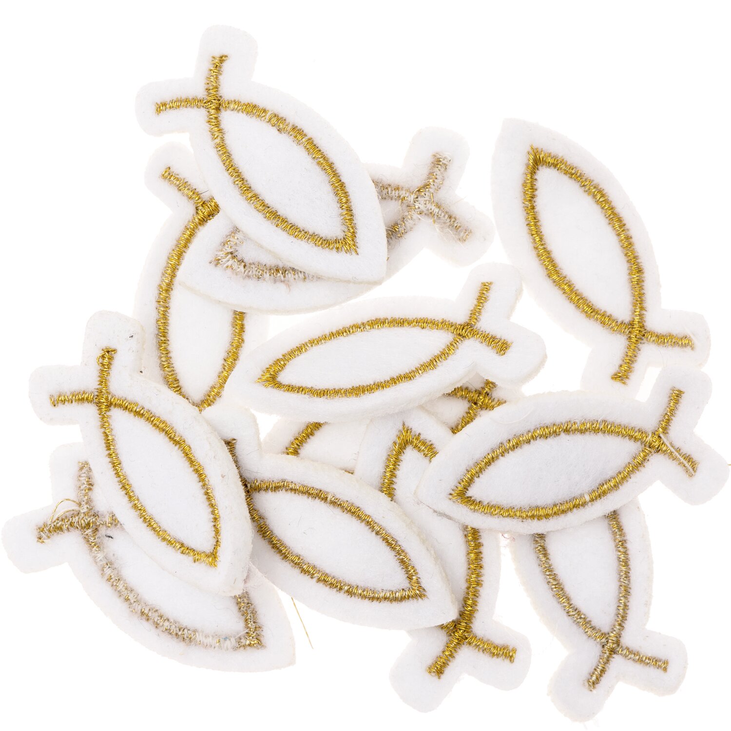 Filzstreu Fisch weiß-gold 12 Stück